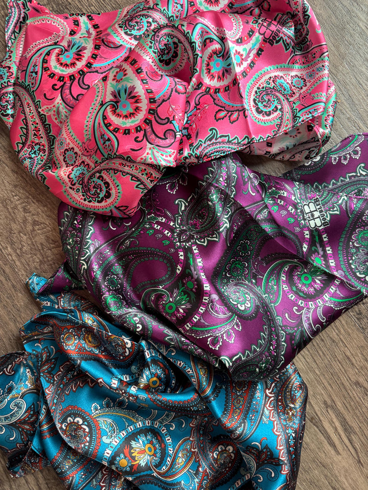 100% Silk Wild Rag Classic Paisley Red Brown Pink Black Purple Blue by Double B Wild Rags