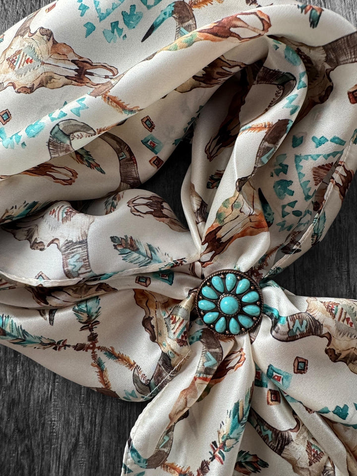 100% Silk Wild Rag Cow Skull and Turquoise by Double B Wild Rags Cowboy Western Scarf