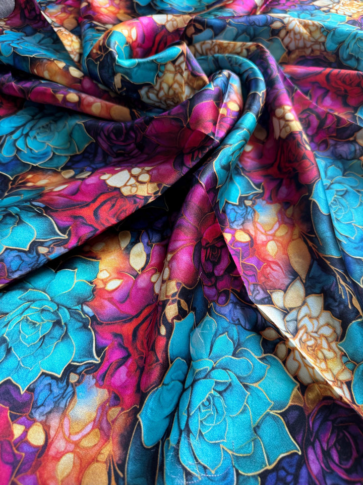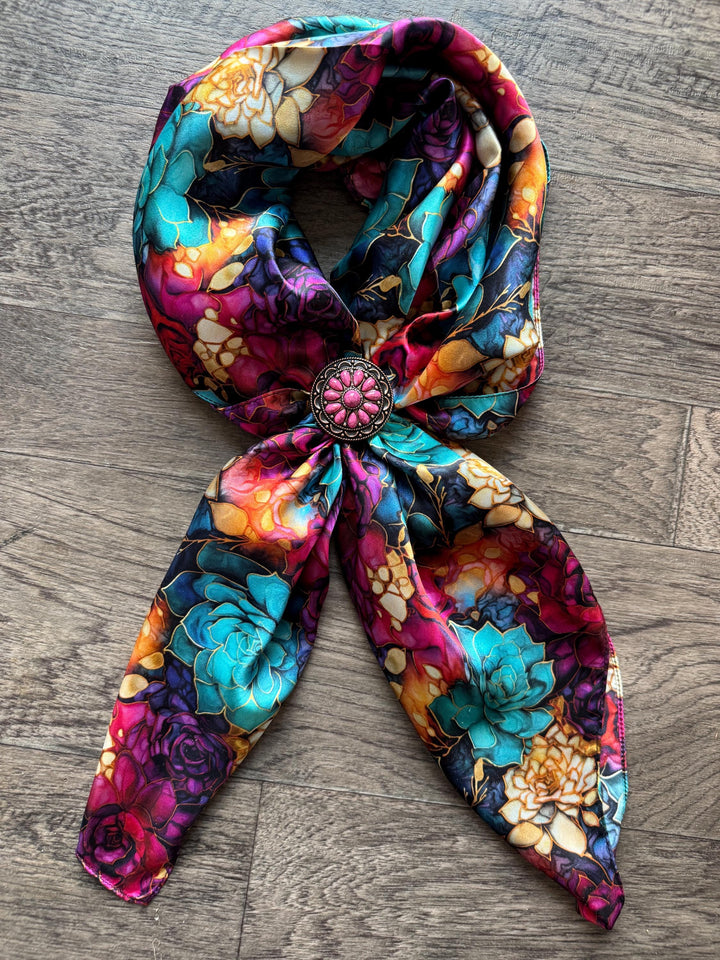 100% Silk Wild Rag Jewel Tone Bold Succulent Cactus by Double B Wild Rags