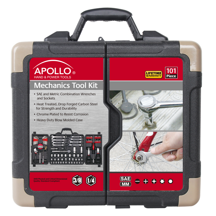Extensive Mechanics 101 Piece Toolset in SAE and Metric in Convenient Hard Case.