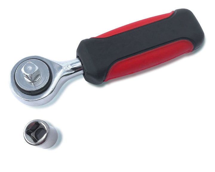 MINI SIZE PERFECT FOR CRAMPED SPACES. With a compact design that fits comfortably in the palm of your hand, this mini ratchet allows you to access tight areas where standard socket wrenches cannot reach or where there is insufficient space to swing and maneuver. Its small size makes it convenient on the go, for emergencies, or situations where a larger socket set is unnecessary.