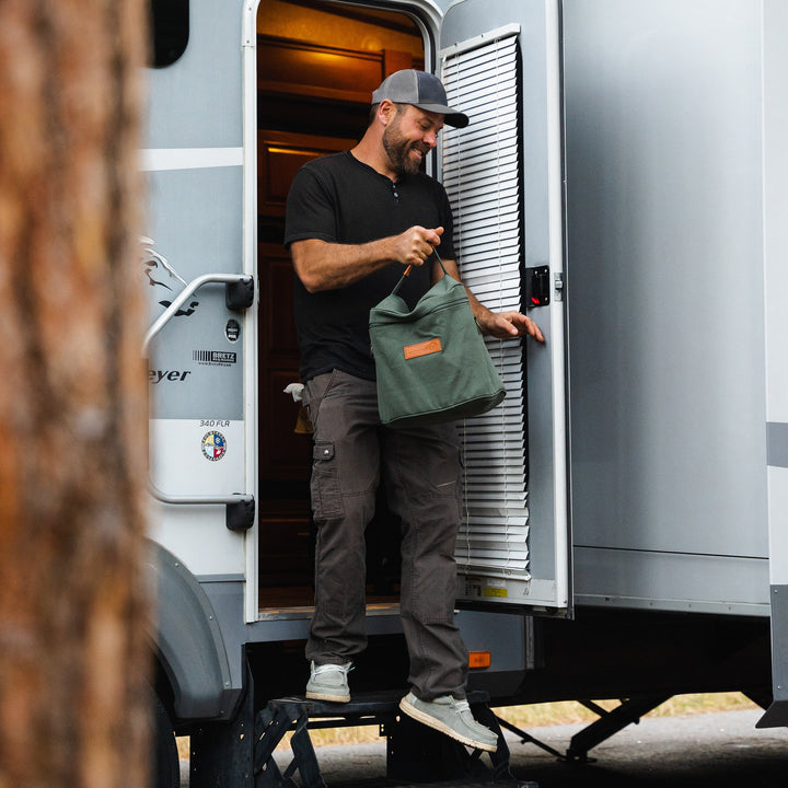 Featuring an extra large outside pocket perfect for carrying cooking utensils. There are 2 small inner pockets on the inside of the bag to keep your hooks in place.