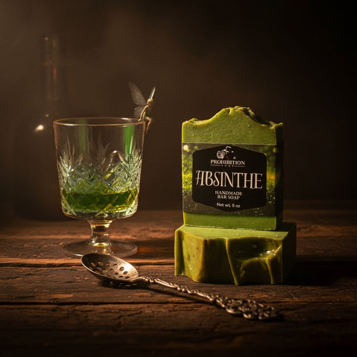 A complex emerald-green soap that captures the mysterious allure of absinthe. Rich herbal notes of anise and fennel blend with melissa, cinnamon, and nutmeg, grounded by warm amber and woody undertones. This sophisticated fragrance is as intriguing as the spirit that inspired it.