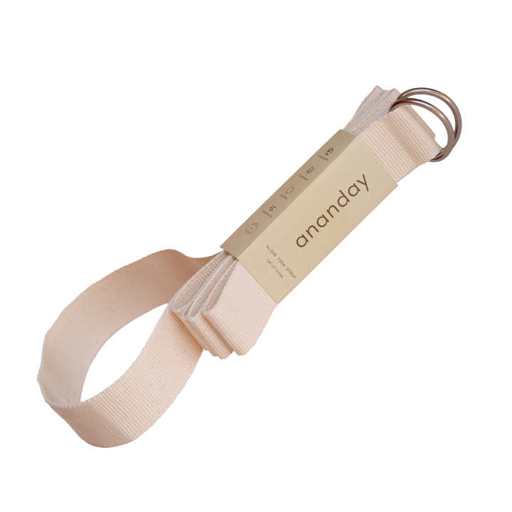 Our Align Yoga Strap is made from 100% GOTS certified organic cotton and brushed zinc metal rings. Free of harsh dyes and chemicals found in conventional yoga straps — no toxins, no synthetics. The metal components are lightweight and ding-resistant (unlike standard heavy metal rings), for a peaceful and supportive practice.