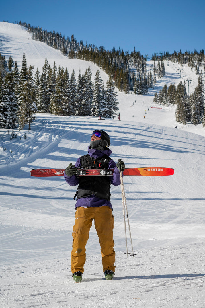 The Alpenglow Skis are Weston’s answer to the skier who wants to carve harder, charge longer, and stay playful across the entire resort. With an 85mm waist, longer cambered section, and a nimble turning radius, these skis are made for early-morning groomers, late-day chunder, and everything in between.