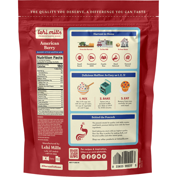 Crafted with care and using premium ingredients, this muffin mix allows you to create muffins that pay homage to the rich agricultural bounty of the American landscape. The vibrant colors and natural sweetness of the berries infuse each muffin with a burst of flavor, creating a delightful harmony that's perfect for any occasion.