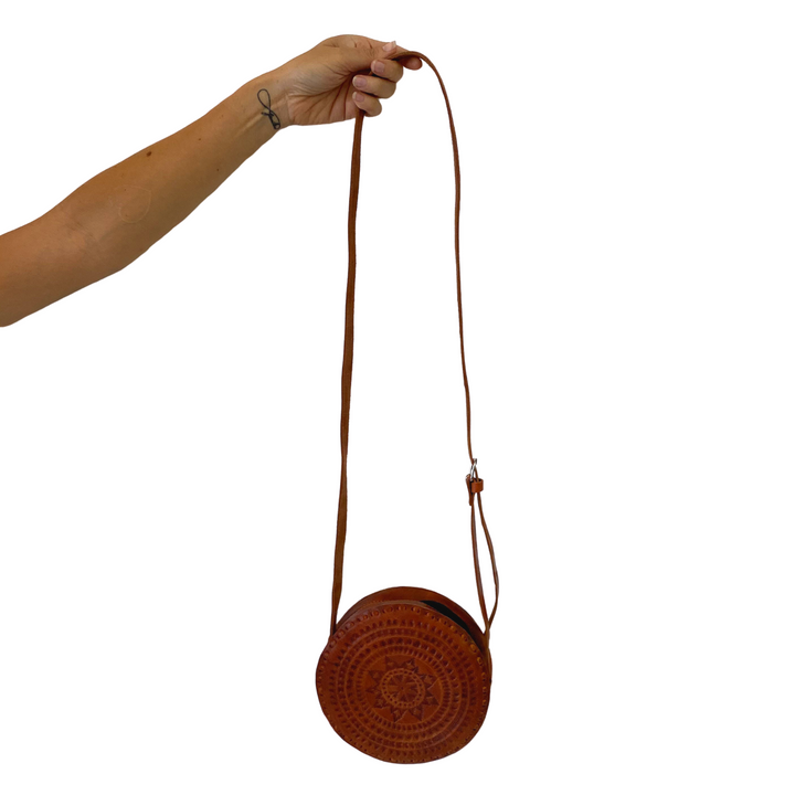 Introducing the stunning Aria leather purse, meticulously handcrafted by skilled artisans in southern Mexico. Each purse boasts intricate tooled details throughout the supple leather, showcasing expert craftsmanship and attention to detail.