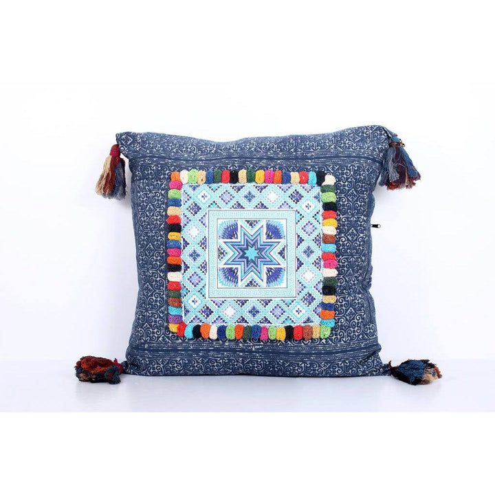 Batik Printed Embroidery Fabric Geometric Cushion- Thailand