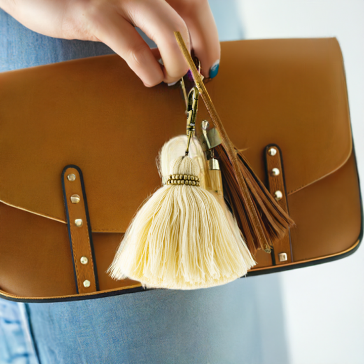 Upgrade your bags and zippers with our Beaded Tassel Zipper Pulls! These lovely accessories come in a pack of 4, featuring four gorgeous colors: beige, grey, orange, and blue. Made with 100% cotton fabric and decorated with beautiful golden seed beads, these tassel pulls add a pop of color and personality to any accessory. Plus, the brass lobster clasp makes them easy to attach and detach. Perfect for keys, purses, backpacks, or anything that needs a little extra flair!