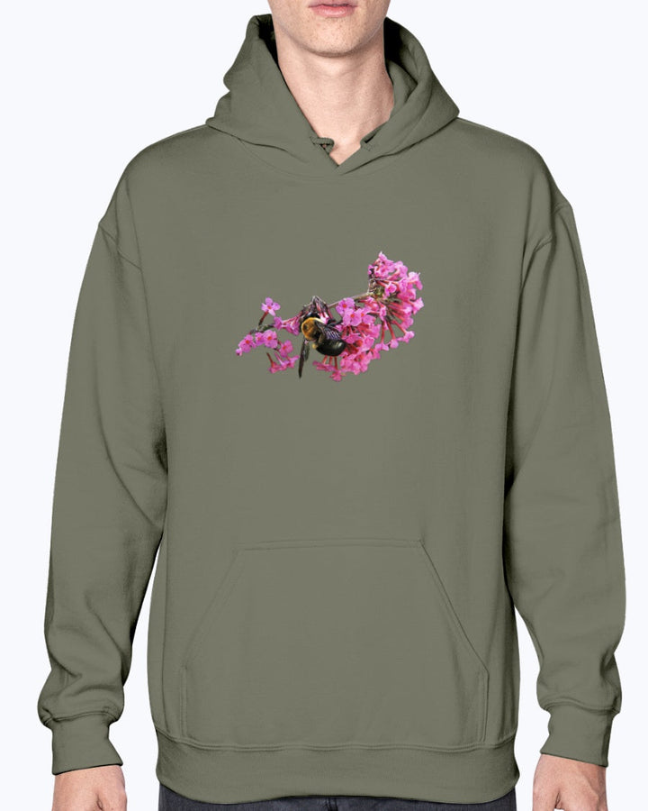 Bee and Butterfly Habitat Fund, Bee Pollinating Graphic, Moss Apparel, Hoodie