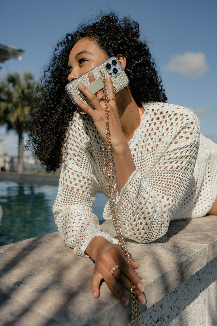 Case Design: Sage and cream floral checker pattern