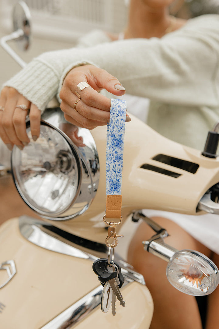 Hang tight to your possessions with the Blue Willow wrist lanyard. It is perfect to keep track of your keys and other accessories. Complete the look with the coordinating Blue Willow case and Lights Out Apple watch band.