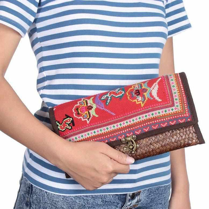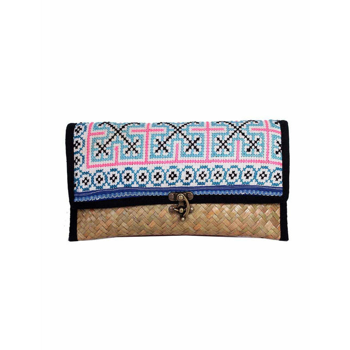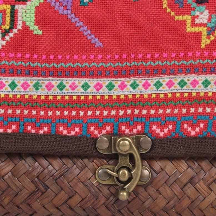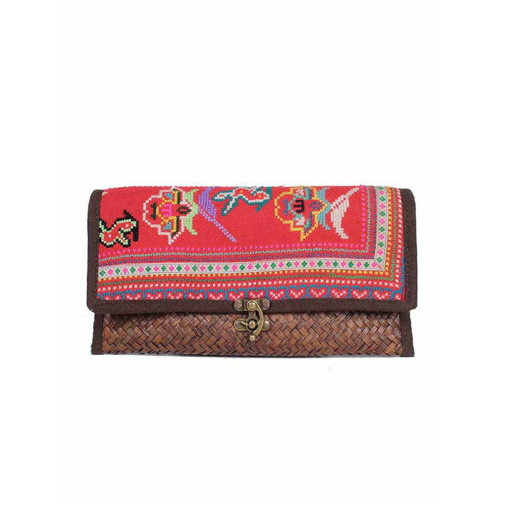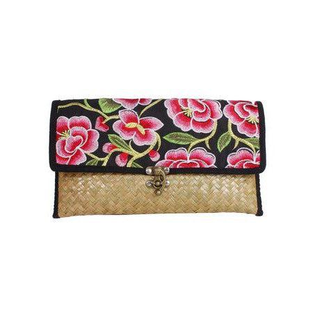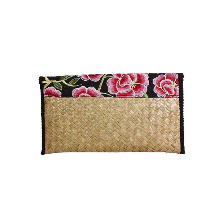 Boho Rattan Clutch with Vintage Embroidery - Thailand