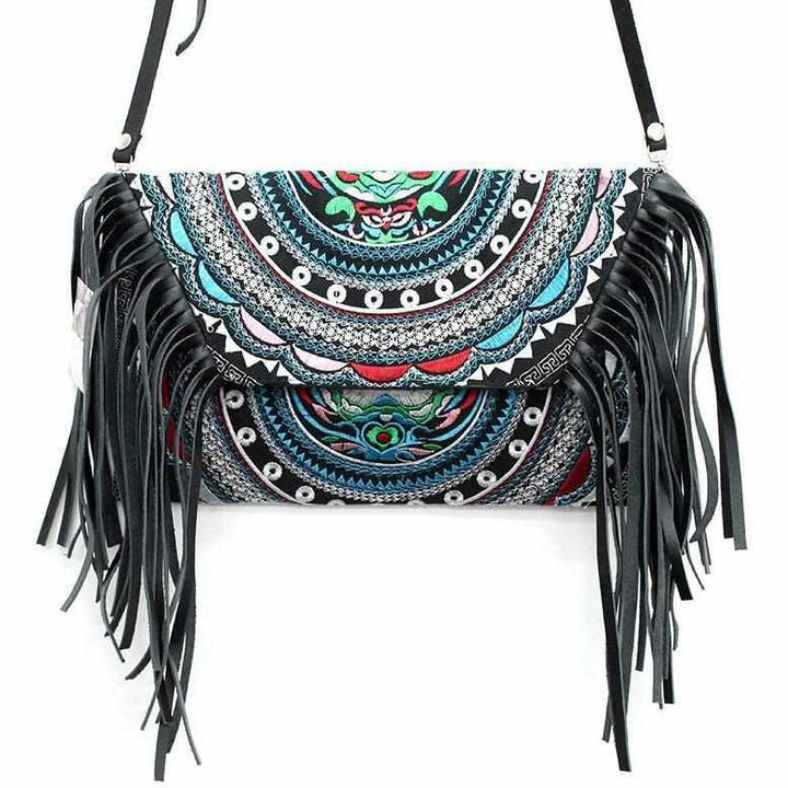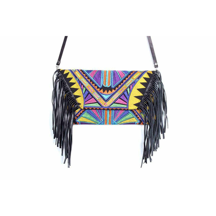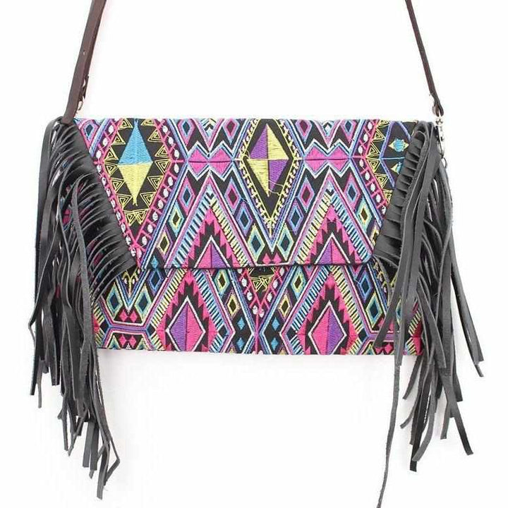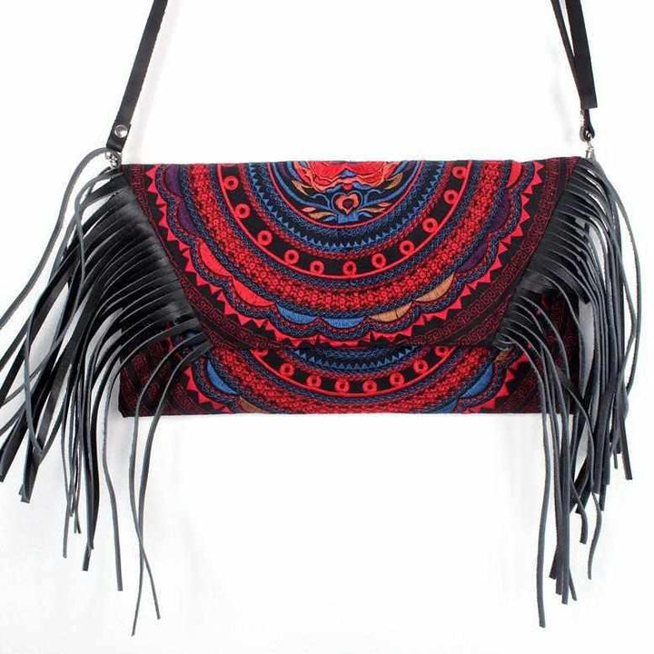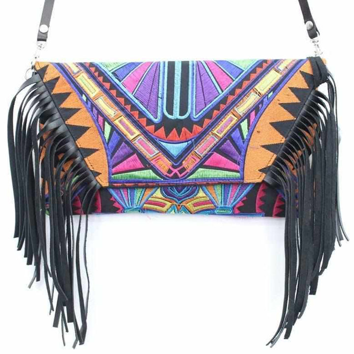 Boho Tribal Crossbody Embroidered Fringe Envelope Bag - Thailand