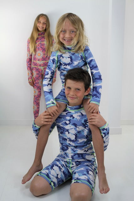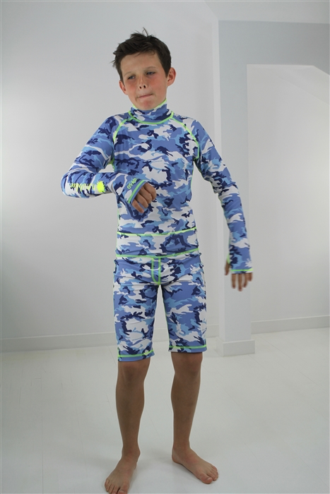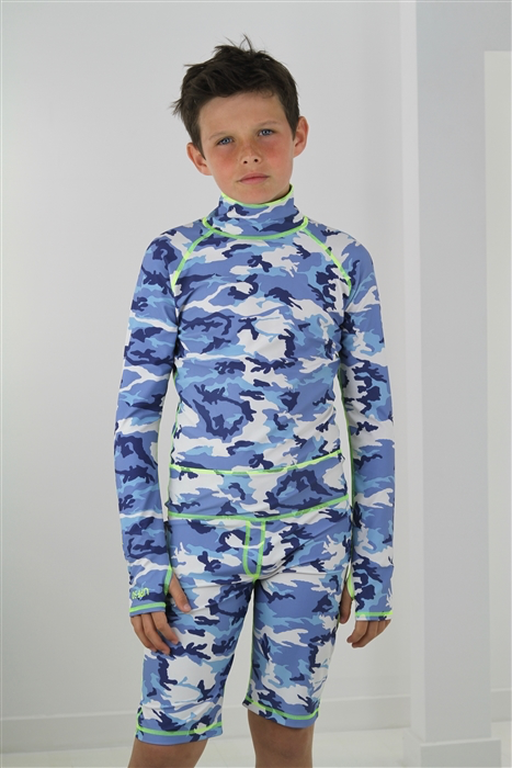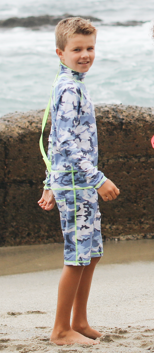 Boy's Short Body Swimsuit - UPF 50+ Sun Protective Swimwear - Blue Camo