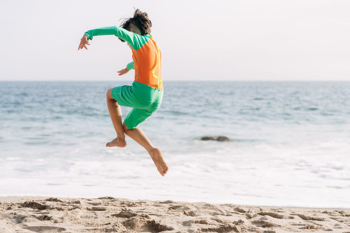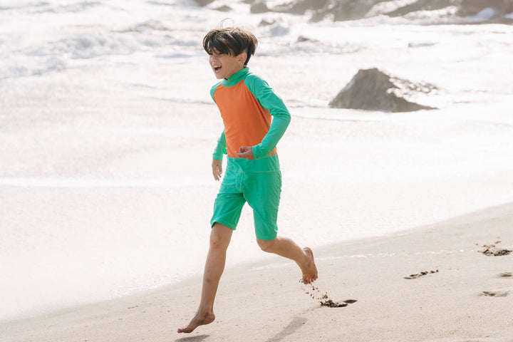 Boy's Short Body Swimsuit - UPF 50+ Sun Protective Swimwear - Jade w/Tangerine