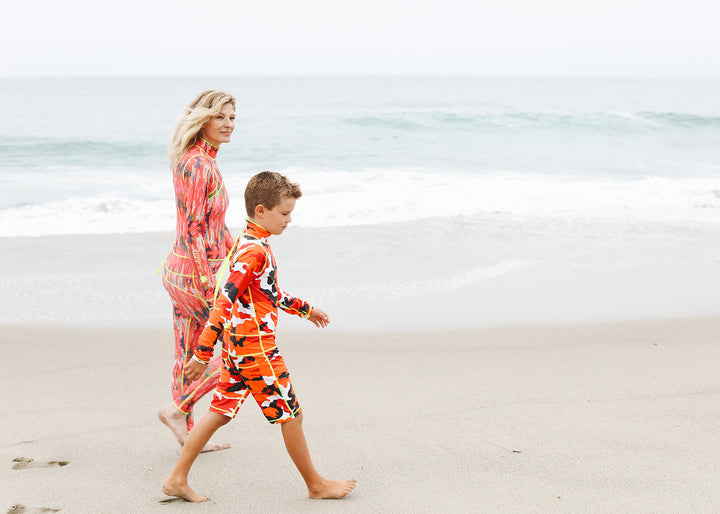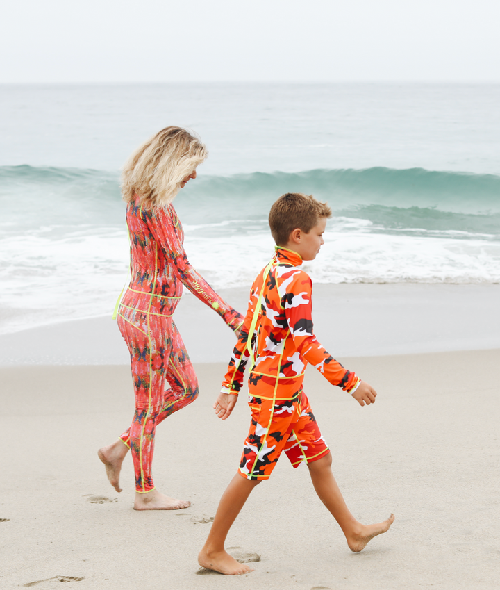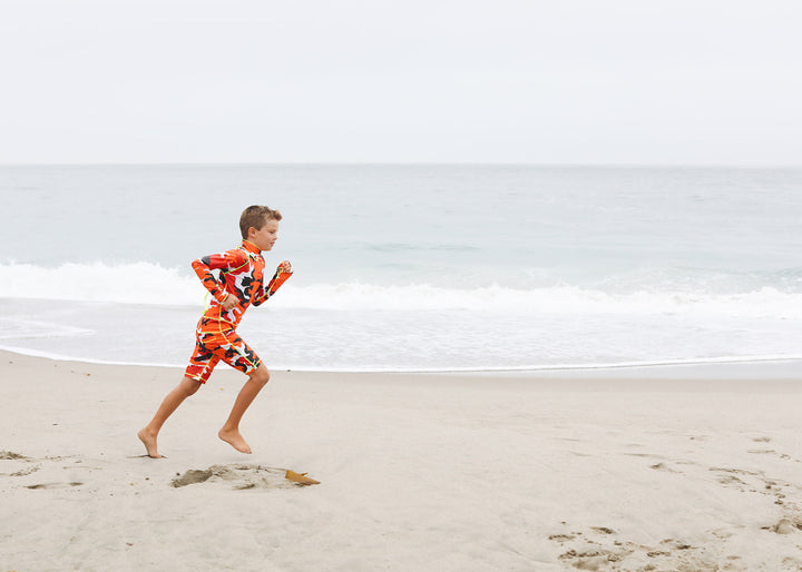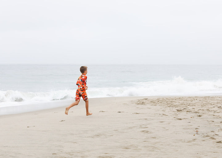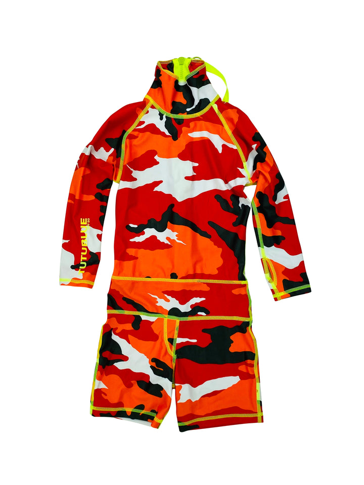 Boy's Short Body Swimsuit - UPF 50+ Sun Protective Swimwear - Red Camo