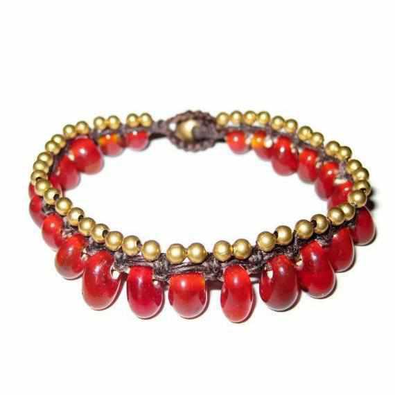 Handcrafted in Northern Thailand by Hmong women artisans, this bracelet is made with hand-braided waxed-cord, resin, and antiqued brass beads, with an antiqued brass jingle bell at the ring-and-toggle clasp. Add this beautiful piece to your collection today!