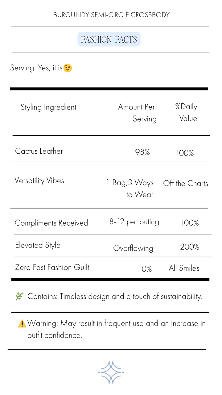 Elevate your wardrobe with our Burgundy Semi-Circle Crossbody Bag, crafted from organic cactus leather—a luxe, sustainable alternative to traditional leather. Featuring a hand-carved bamboo handle and convertible strap options, this eco-conscious bag can be worn as a crossbody, shoulder bag, or wristlet.