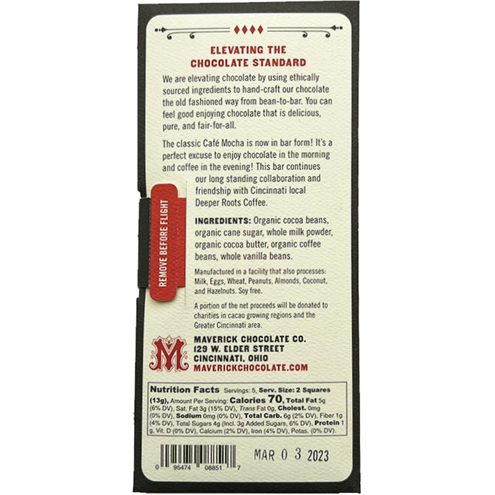 The classic Café Mocha is now in bar form! It's a perfect excuse to enjoy chocolate in the morning and coffee in the evening! This bar continues our long standing collaboration and friendship with Cincinnati local Deeper Roots Coffee.