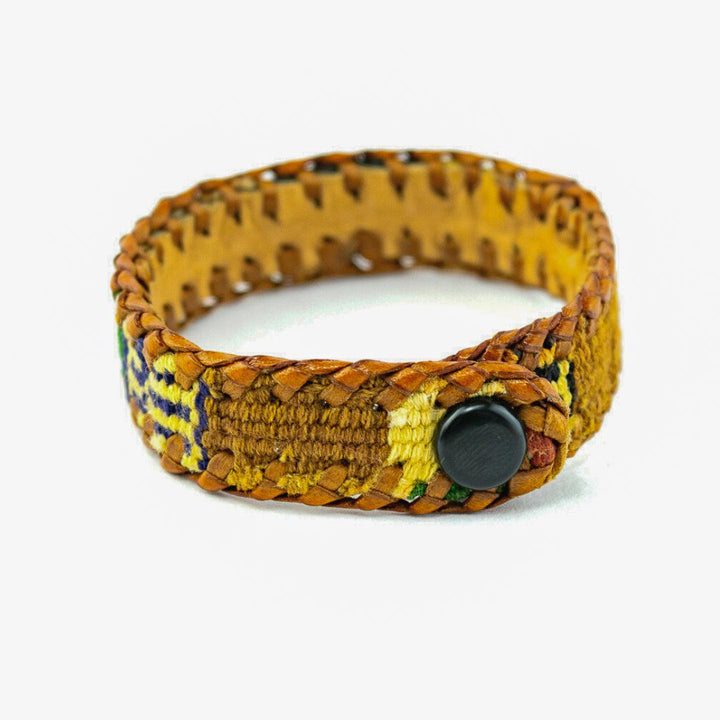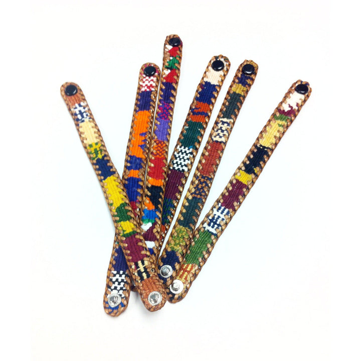 Chula Handmade Fabric & Leather Snap-on Bracelet - Guatemala