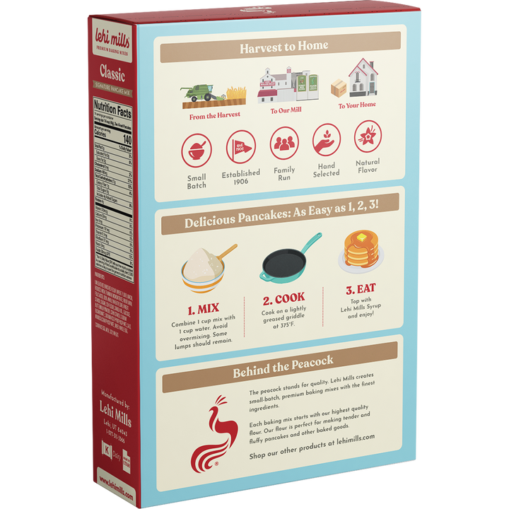 Lehi Mills Classic Pancake Mix is a versatile, just-add-water blend that brings the comforting taste of homemade pancakes to your table with ease. Crafted from premium, hand-selected wheat, this mix delivers light, fluffy pancakes with a rich, satisfying flavor reminiscent of Saturday mornings at home.