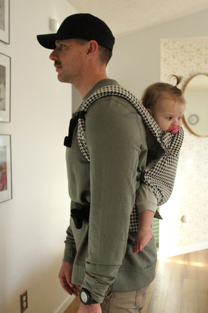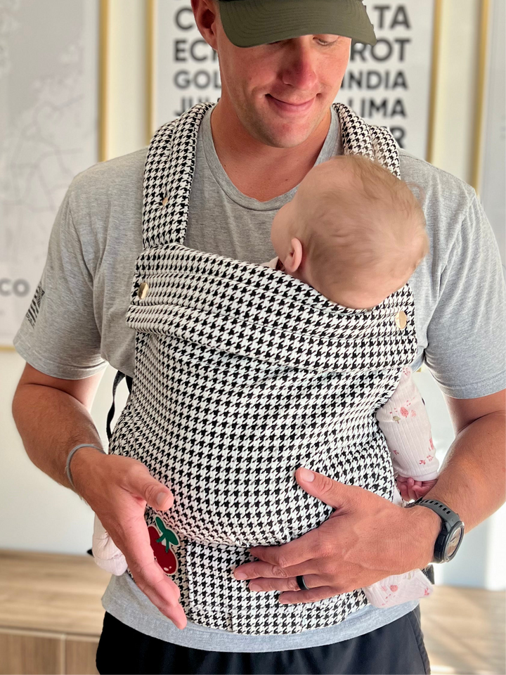 Meet Coco Houndstooth: a soft, stylish baby carrier designed for year-round comfort and confidence.