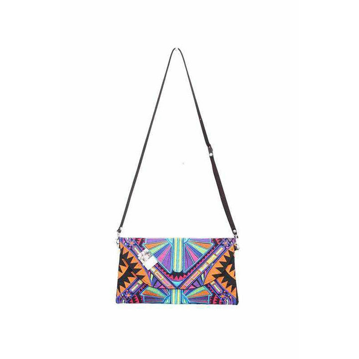 Beautiful stitching in fun, vivid hues is used to create our Tahj limited edition collection. An elaborate tribal design is combined with beautiful needlework in this stunning purse. The leather strap can be taken off and used as a clutch.