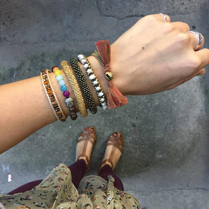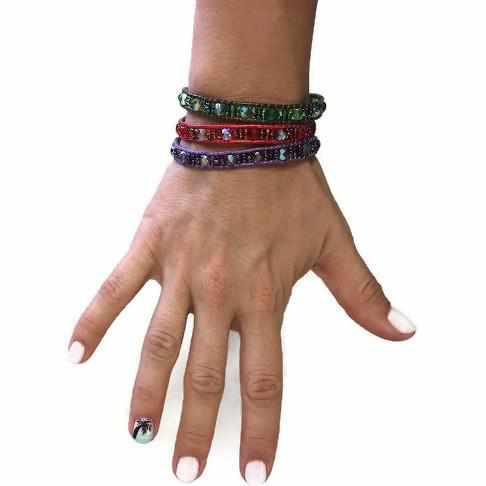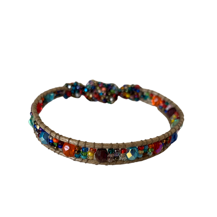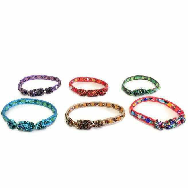 Our Cuero Bracelet is the perfect gift! Made lovingly by our artisans in Guatemala with glass beads from the Czech Republic. Made with colorful cotton string and adorned with Czech seed beads. Finished with a with strong magnetic closure.