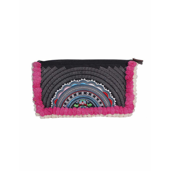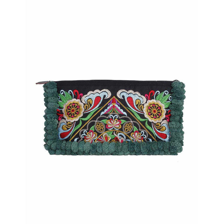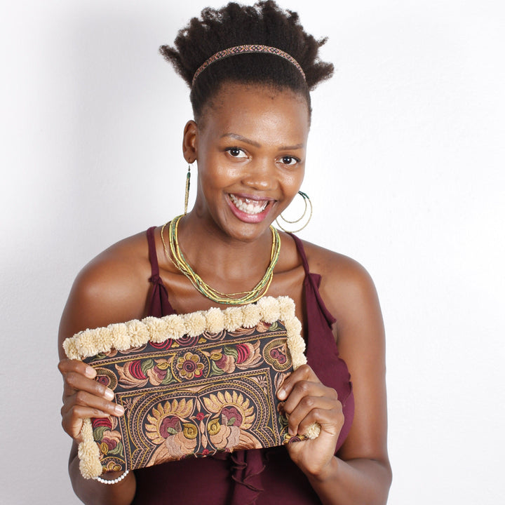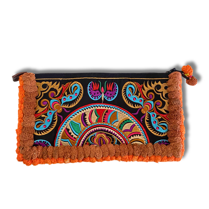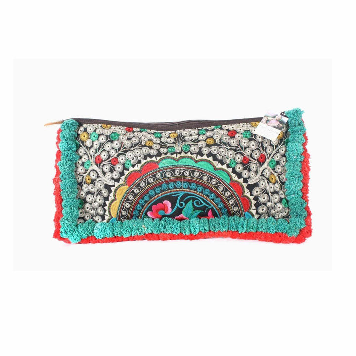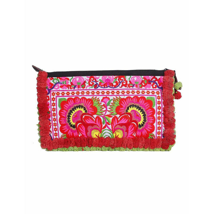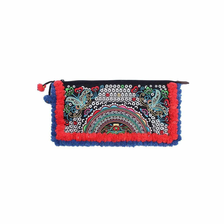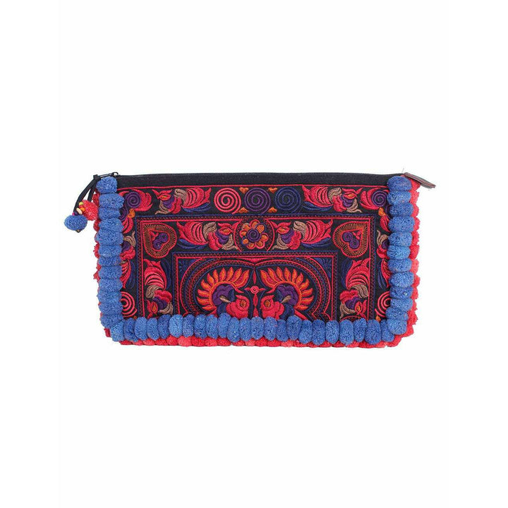 Double Pompom Embroidered Hmong Clutch - Thailand