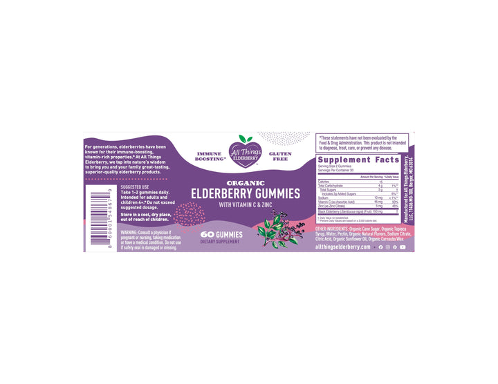 Boost your immune system with our delicious Elderberry Gummies! Packed with natural elderberry, zinc, and vitamin C, these chewy treats are a tasty way to support your overall health. Enjoy the goodness of nature in every bite.
