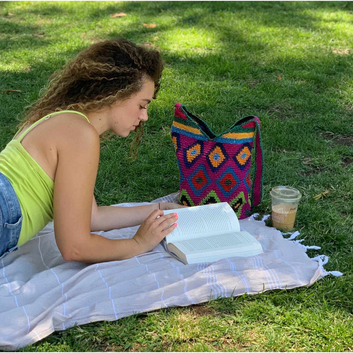 Get ready for all your adventures with our Eliza Bag, crafted with love and purpose by the skilled artisans of the Chichicastenango Community in Guatemala. These crochet bags are made with vibrant cotton string and are an effort to preserve the artisans' cultural identity and traditional techniques.