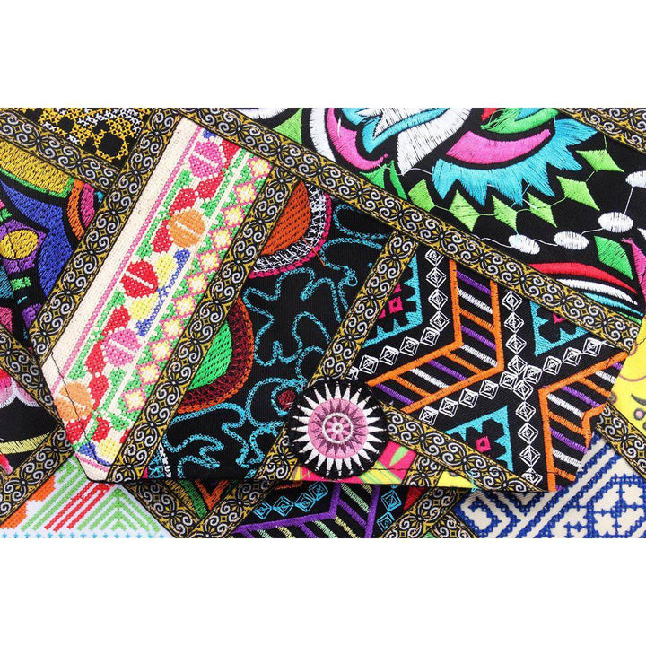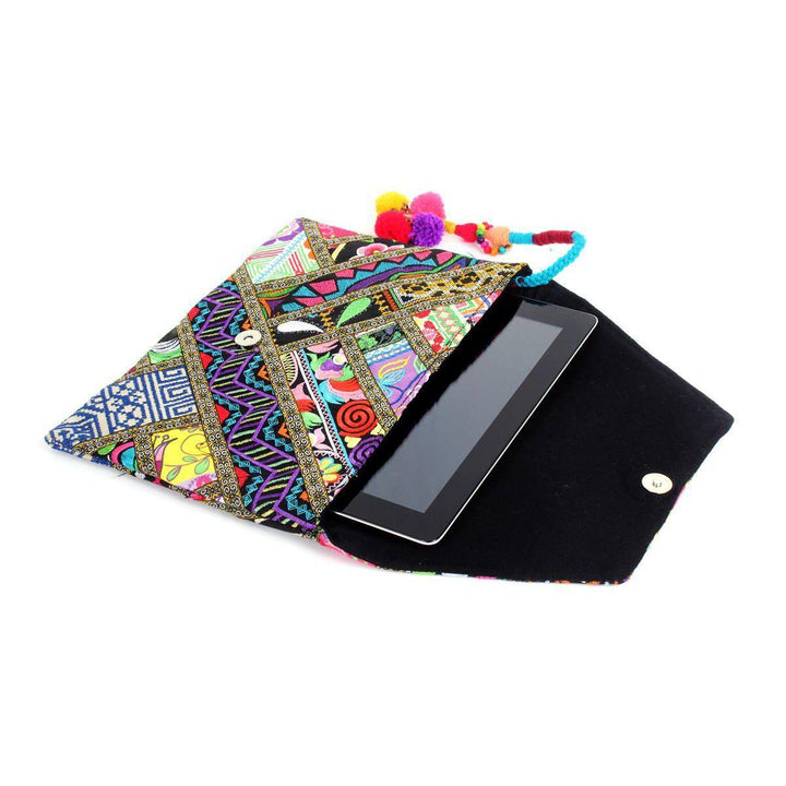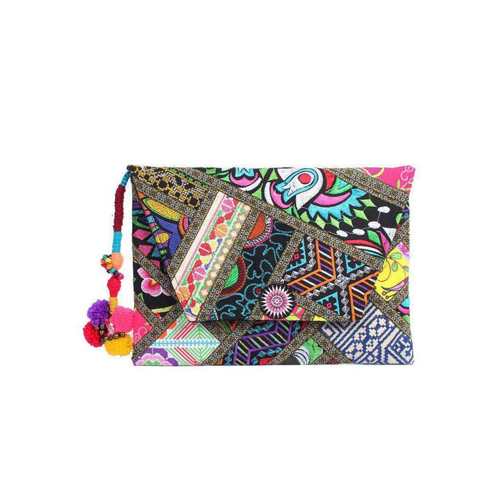 Embroidered Patchwork Clutch with Pom Pom Tassel - Thailand