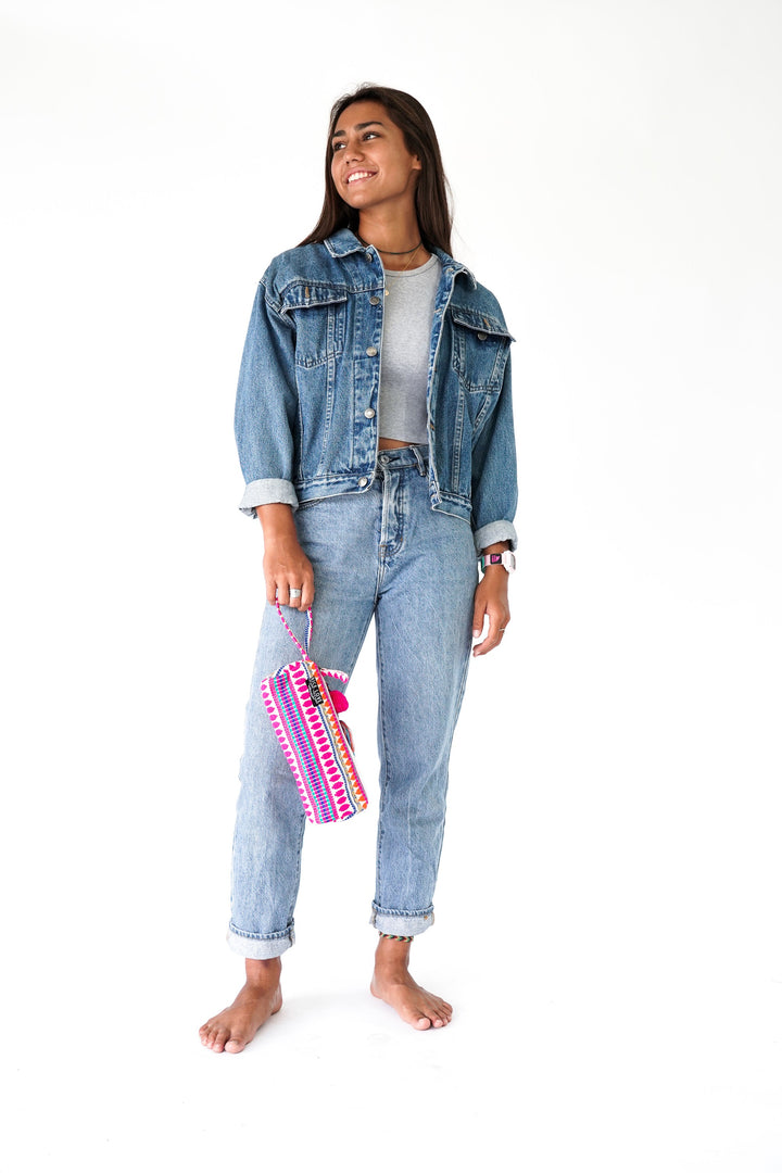 The Pink Zipper Pouch is a beautifully handmade accessory, perfect for keeping your small essentials organized. Crafted from durable fabric and natural jute, it’s lightweight and versatile—ideal for storing makeup, accessories, or daily must-haves. The vibrant pink design adds a fun and stylish touch to any bag.