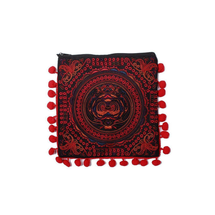 Embroidery Butterfly Clutch With Pompoms - Thailand