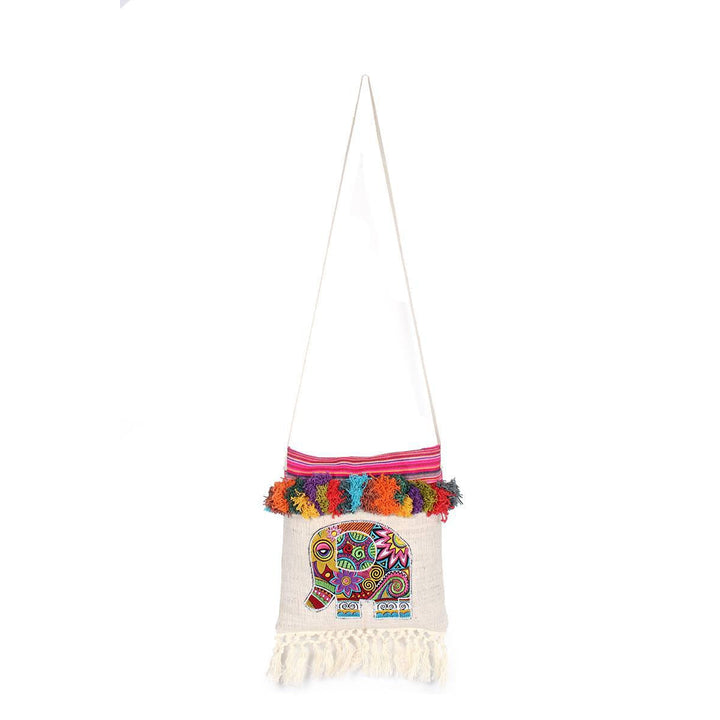 Embroidery Tassel Pom Pom Elephant Sling Bag - Thailand