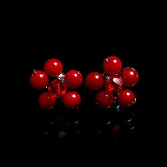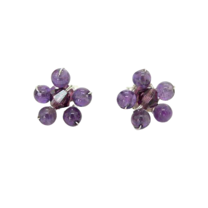Flower Stud Semi-precious .925 Silver Stone Earrings- Thailand