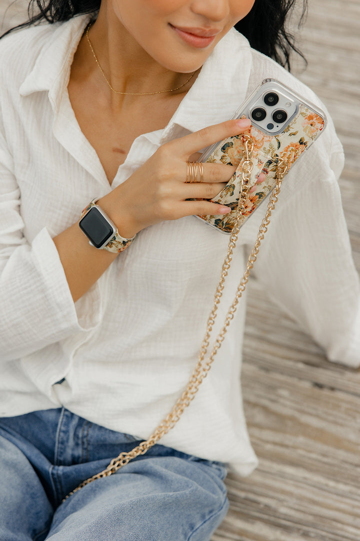 Pair this case with the coordinating Vintage floral wrist lanyard and Apple watch band!