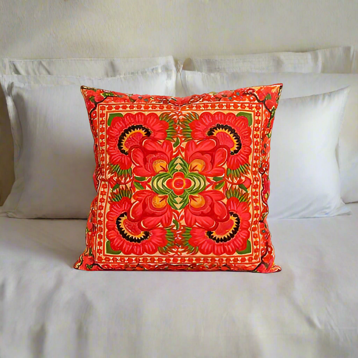 Add a pop of color and fun to any room with our collection of Hmong inspired embroidered pillow covers. Lovingly handmade in Thailand by our artisan partners following fair trade guidelines using colorful floral embroidery.