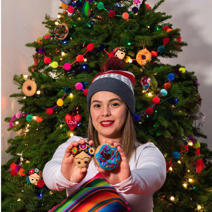 Bring a touch of vibrant color to your home with our unique and beautiful hand-embroidered felt ornaments from southern Mexico. Each ornament is crafted by the talented Raquel and her family, using an assortment of wool felt colors to create an array of unique designs. They are hand-embroidered to give each one a one-of-a-kind finish. These ornaments are perfect for adding a pop of color to any room, or for hanging as a festive addition to a gift.
