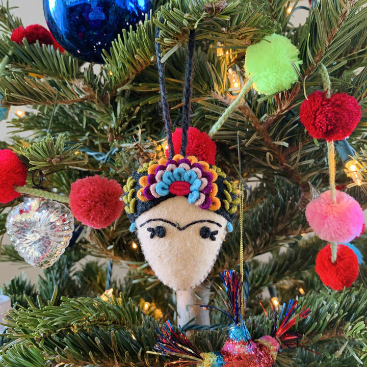 Frida Kahlo Felted Embroidered Handmade Ornament - Mexico