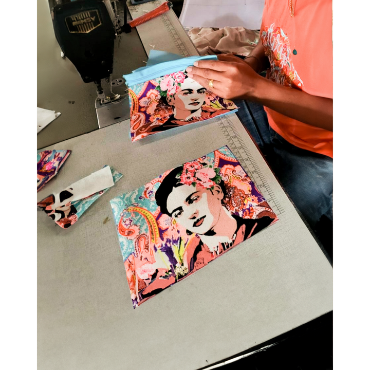 Discover our Frida Kahlo Wristlet. This versatile accessory serves as the ideal carry-all for your everyday needs. Don't miss the opportunity to pair it with our matching tote (Search Frida Tote) for a coordinated look. Handcrafted with care by Nun in the highlands of Thailand, each wristlet features a selected design printed on both sides. Elevate your style with the essence of Frida Kahlo's iconic artistry.