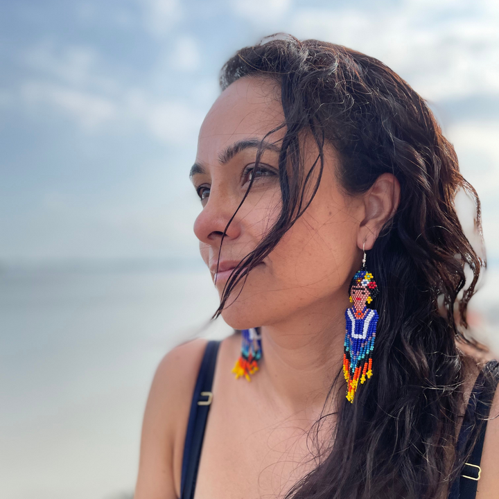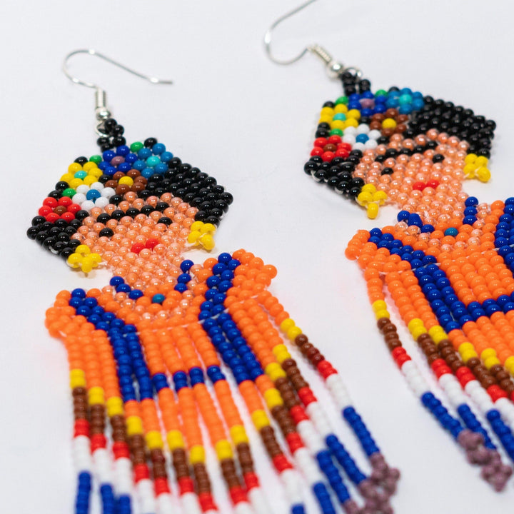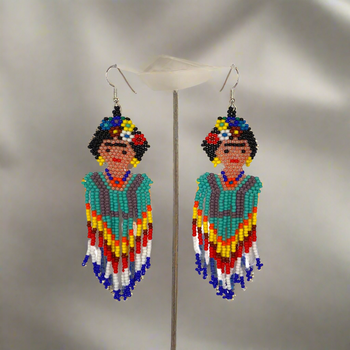 Frida Kahlo Seed Bead Dangly Earrings - Guatemala
