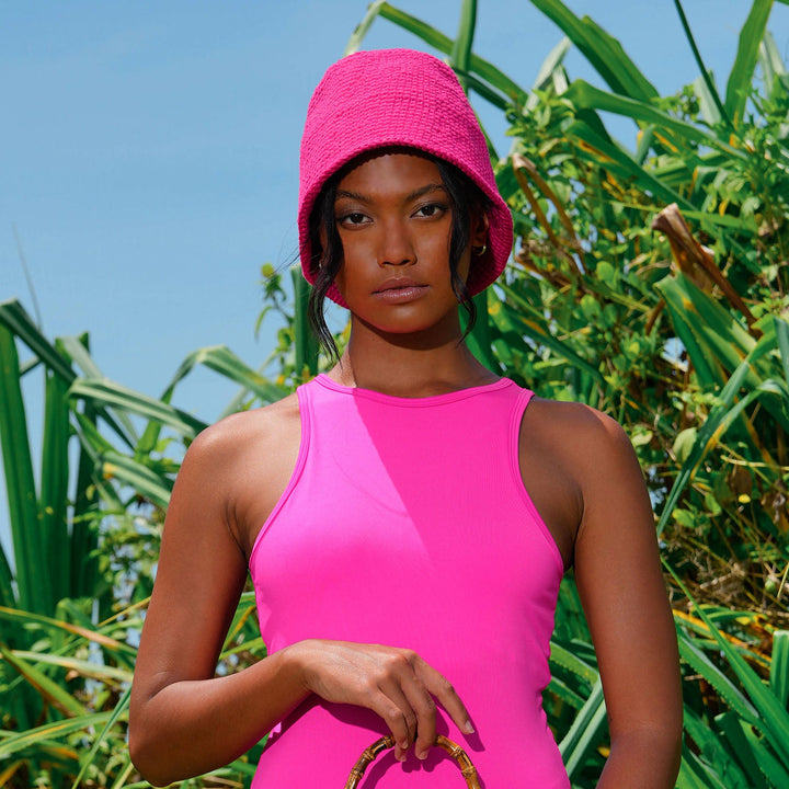 Gani hat is hand-crocheted in breathable cotton yarn by our local artisans in Java island. Featuring a modern twist of the cloche hat shape, this hat has sturdy textures and fluid proportions. Fold the brim part to shape it into a sailor hat style.
