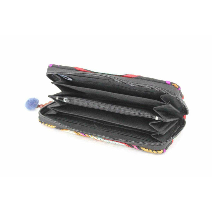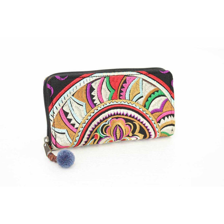 These colorful wallets are created with love by our artisan partners in Thailand. Part of our Hmong fabrics collection, the embroidered boho motif is the center of this piece that makes it so unique.