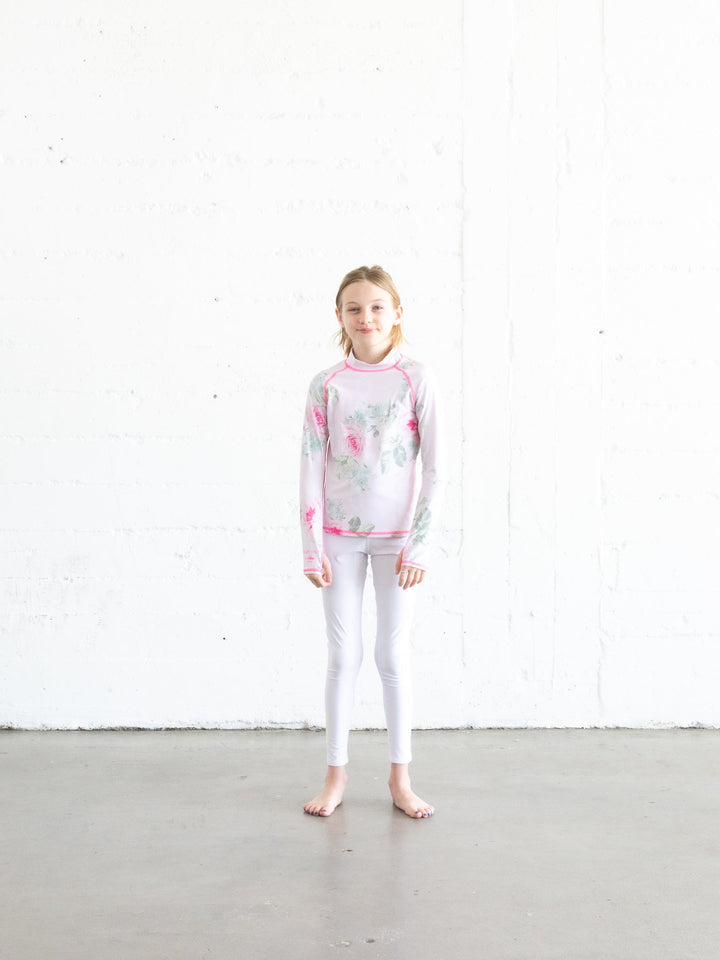Girl's Pullover Rash Guard - Royal Bouquet Pink Shabby Chic Collab
