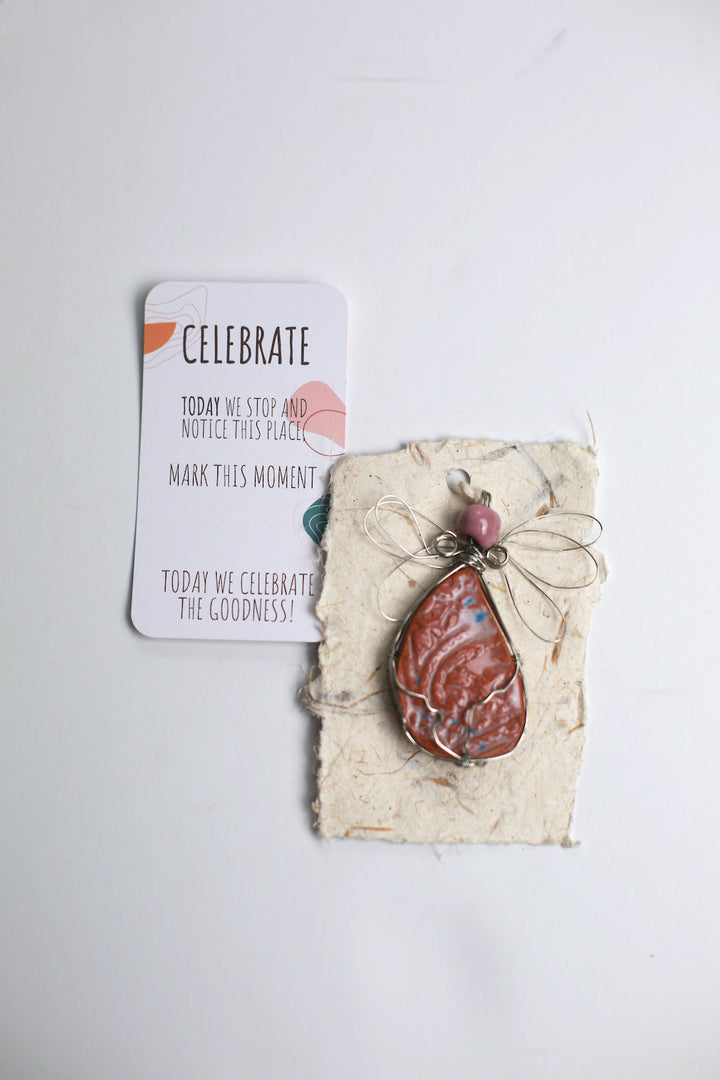 These Giving Angels combine the beauty of our handmade, upcycled ceramic Angels with gorgeous banana paper from Haiti and a sentiment card. Made by our amazing jewelry team in Haiti, they make an encouraging gift for anyone!