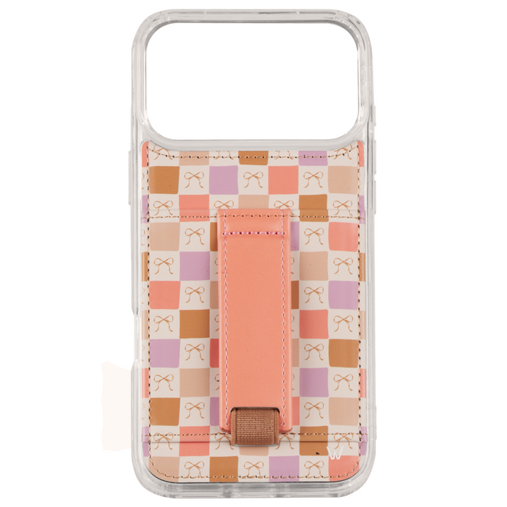 Case Design: Pastel pink, purple and brown checker pattern with brown bows