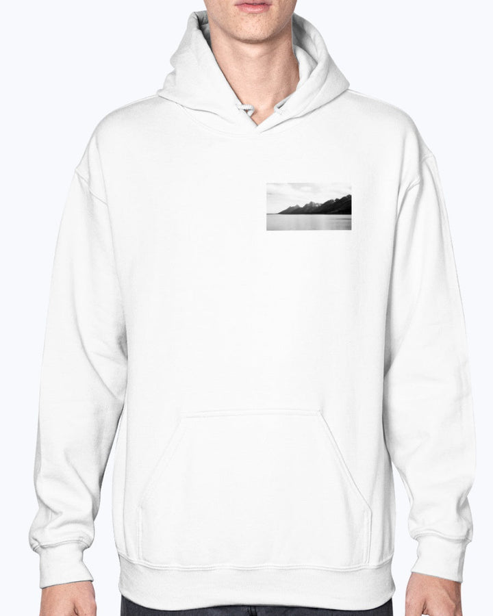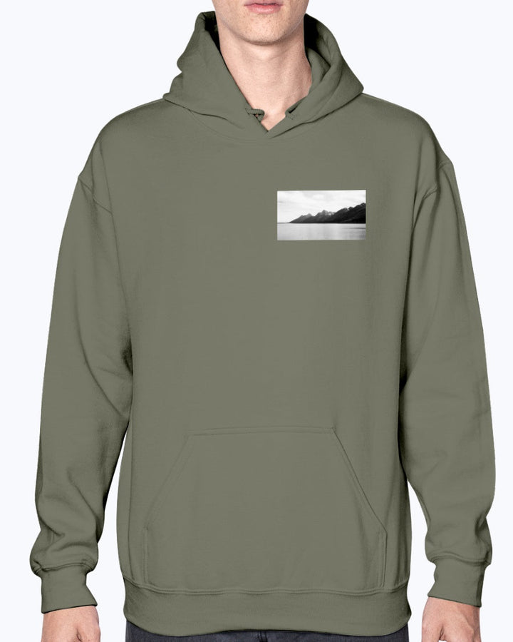 Grand Teton's Distant Mountains, Reflective Lake, Moss Apparel, Unisex Hoodie