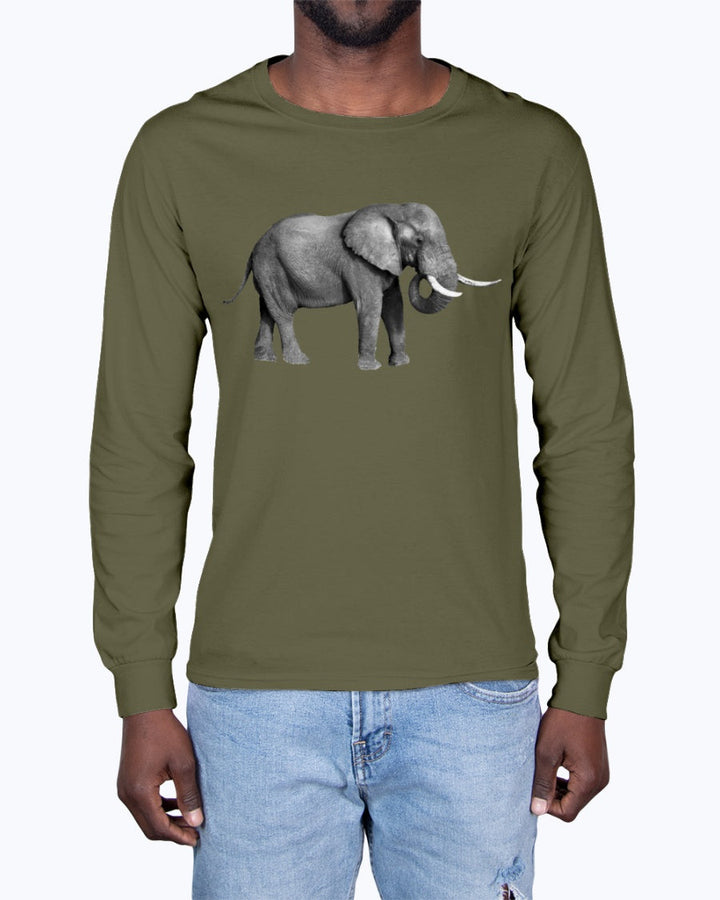 Grazing African Elephant, African Elephant, Elephant lovers, wildlife fans, Moss Apparel, Unisex Long Sleeve T-Shirt